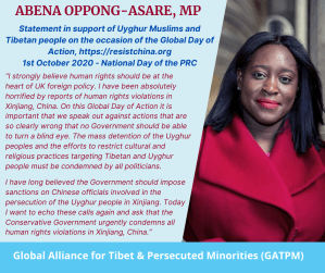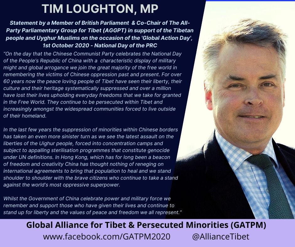 - The Global Alliance for Tibet & Persecuted Minorities (GATPM) welcome Statements by British MPs – Tim Loughton and Abena Oppong-Asare from the Conservative and the Labour Parties respectively on the ‘Global Action Day’ – 1st October 2020.