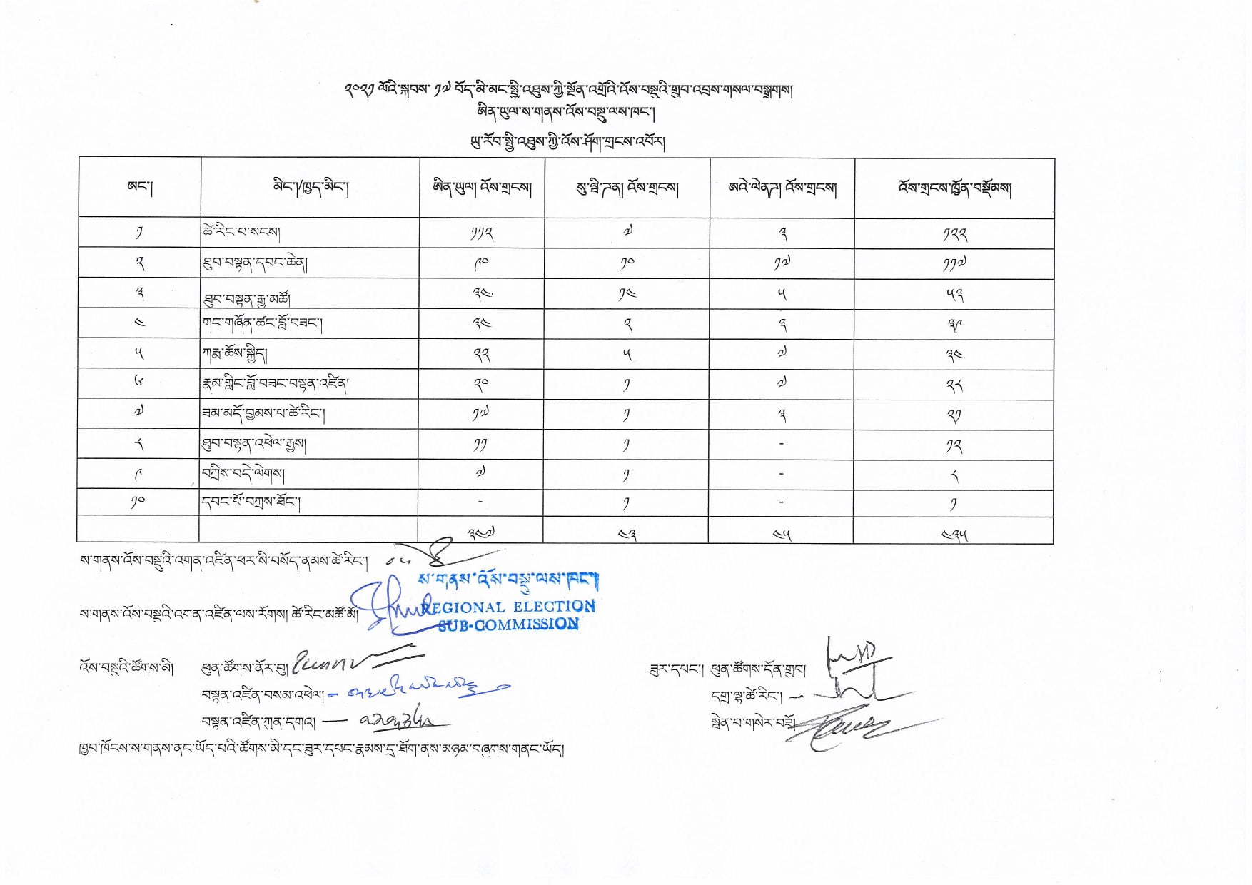 2021 Preliminary Election Results of the Tibetan Parliament in Exile