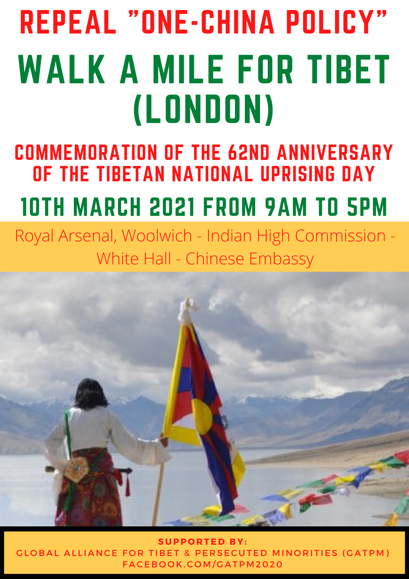To coincide with the commemoration of the 62nd anniversary of the Tibetan National Uprising Day, on 10th March 2021, a group of eight Tibetans took part in the #WalkAMileForTibet in support of the Repeal “One-China Policy” campaign.