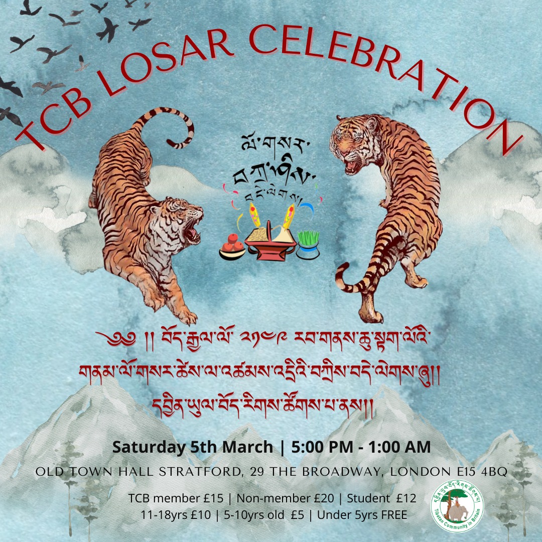 Saturday, 5th March from 5pm to 1 am | TCB Losar Celebration | Venue: Old Town Hall, Stratford | Organiser: Tibetan Community UK