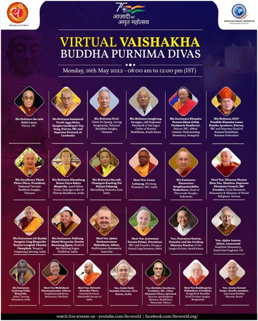 Organised by the International Buddhist Confederation (IBC) in Delhi with the support of the Ministry of Culture, Government of India, Buddhist leaders from over a dozen countries including Tibetan spiritual leader and Nobel Peace laureate His Holiness the Dalai Lama will release their messages as a part of the celebration.