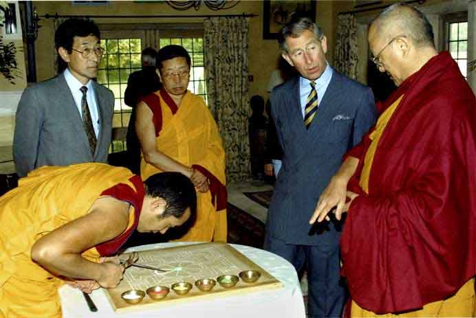 On 3rd June 2002, a delegation from Tibet Foundation presented a special gift, made from sand particles – the sacred Sand Mandala, to Her Majesty The Queen on the occasion of HM’s Golden Jubilee Celebration.