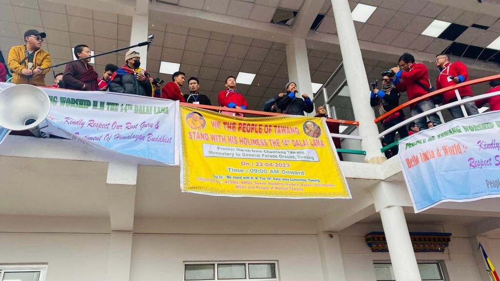 The Tawang Rally on 22nd April was organised by ‘We Stand With His Holiness the 14th Dalai Lama Committee’, which comprised of at least 15 NGOs and civil societies including ATDSU, AMSU, AAPSU, MMT, WWA Tawang, Senior Student Leaders, Bazar Secretaries, Ex. Monpa Student of TCV, CST Schools, Monyul Society Tawang, WASV, NGOs, Massage Keaying Budmay Gonpa Welfare Society (Pungteng), Monks & Nuns & People of Monyul Tawang.