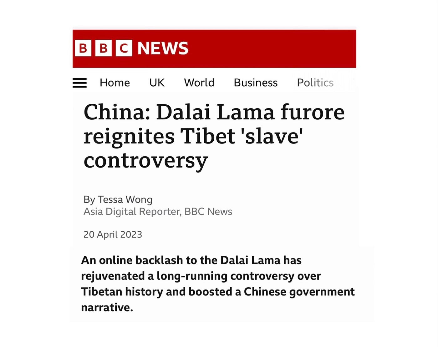 This time, the attack on the Dalai Lama struck a chord. Within ten days of the public uproar, the BBC ran a breathless story on the Dalai Lama incident reigniting “Tibet’s ‘slave’ controversy.” While the term ‘slave’ appears in the sensational headline, the author buries inside the article an oblique acknowledgement of common knowledge that slavery did not exist in Tibet. Rather, Tibet’s society was comprised of people working on “estates owned by nobles, monasteries or the state” to whom taxes were paid. This desultory revelation, along with historian Tsering Shakya’s commentary on the absence of enslavement in Tibetan society, comes after a BBC shout-out to the Chinese government for recently creating ‘Tibetan Serf Emancipation Day.’ Chinese nationalist propaganda has now been dignified in mainstream media as “a long-running controversy over Tibetan history.”[6]