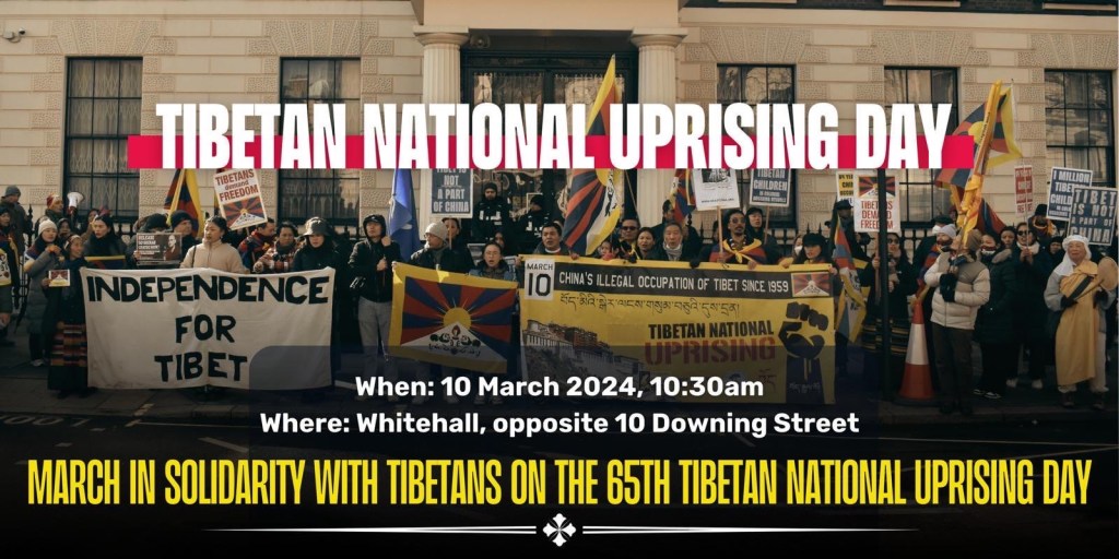 2 thoughts on “March 10th 2024: London protest to mark the 65th anniversary of the Tibetan National Uprising Day of 1959, Communist China’s aggression on peaceful Tibetans”
