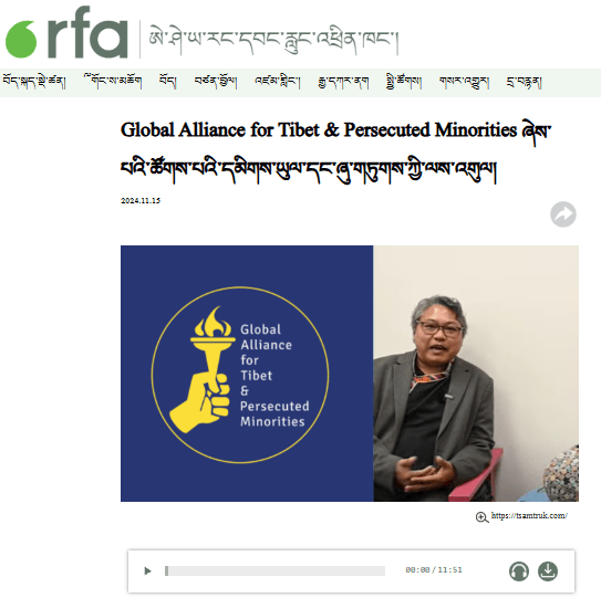 The Global Alliance for Tibet & Persecuted Minorities (GATPM) is making headlines once again. Radio Free Asia (RFA) Tibetan, the premier Tibetan broadcasting station based in Washington, D.C., has reached out to GATPM for an exclusive feature.