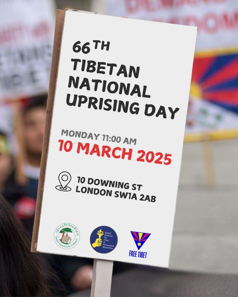 Come and join the Tibetan Freedom March and Commemoration Event in London on March 10th to show your support and solidarity with the Tibetan people. For more than six decades, Communist China has tightly controlled Tibet and its brutal repression continues. This must stop. Stand for Justice, Freedom, Human Rights and Democracy.