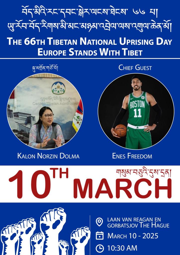 The day will also bring Tibetans across the European countries in The Haque where a massive rally is being planned – calling for end of China’s occupation of Tibet under the banner of ‘Europe Stands with Tibet’. Americsn basketball star Enes Kanter Freedom is scheduled to address the rally along with Kalon Rinzin Dolma, Minister for the Department of the Information and International Relations (DIIR) of the Central Tibetan Administration amongst other leading speakers.