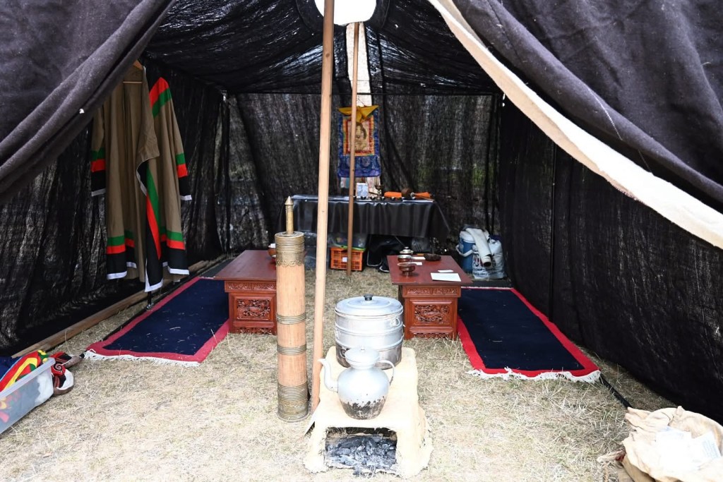 In addition to the performances and speeches, the event offered an immersive cultural experience. A traditional Tibetan nomadic tent (ba) was erected on site by the artist Uygen Choephell from Bristol, inviting visitors to step inside and learn more about the way of life in the high plateau and the steppes. An exhibition on the Dalai Lama’s four principal commitments – promoting human values, fostering religious harmony, preserving Tibetan culture and environment, and reviving ancient Indian knowledge – allowed attendees to engage deeply with his teachings and legacy.