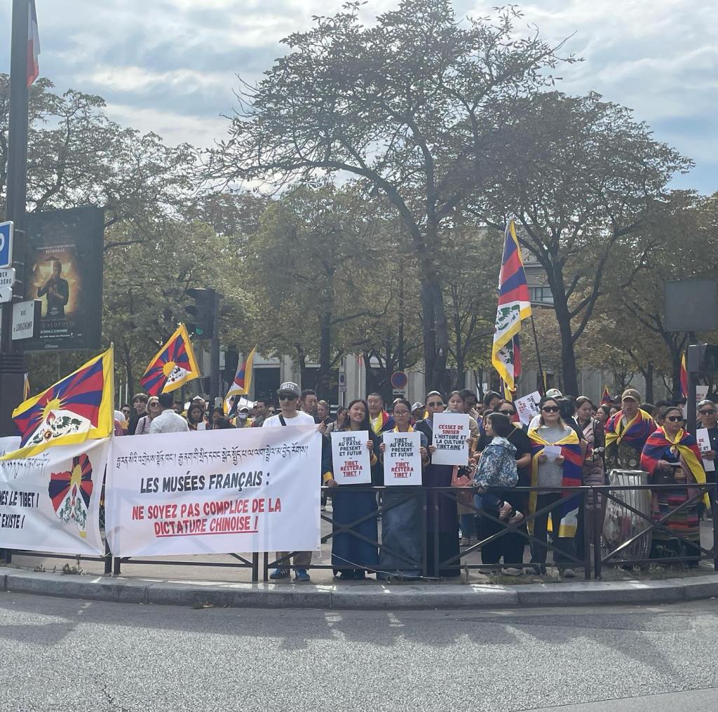 Photo: Geneviève GarrigosPhoto: Geneviève Garrigos(Image source: Phayul – Tibetans in Paris, France protests in front of Musée Guimet on Saturday (Photo/X)